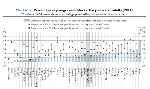 როგორც ზედა ცხრილში შეგიძლიათ ნახოთ, გერმანიაში უმაღლესი დამთავრებული 25-34 და 55-64 წლის მოსახლეობის 30%-ს აქვს, ხოლო მაგ. აშშ-ში 40%-ზე მეტს. თუ გერმანიაში ნაკლები ადამიანი სწავლობს უმაღლესში, მაშინ რა შეიძლება ჩაითვალოს გერმანიის მიღწევად?